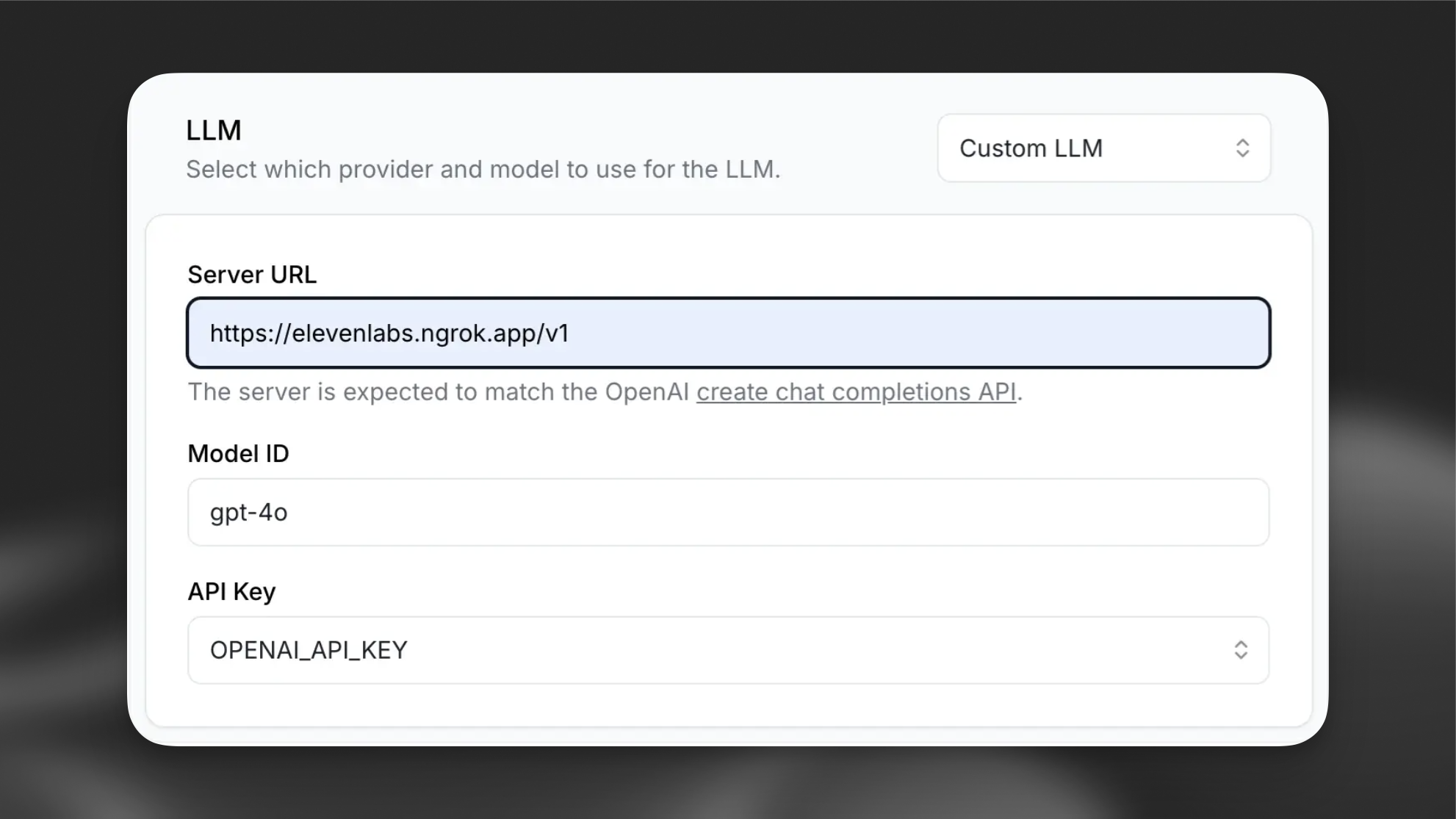 Custom LLMs let you bring your own OpenAI API key or run an entirely custom LLM server.